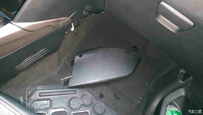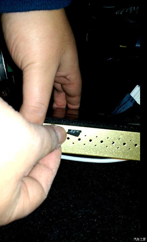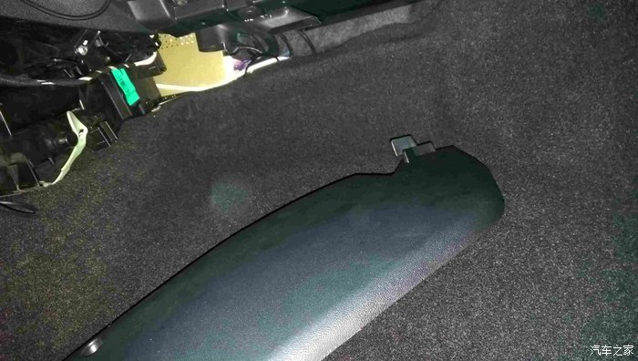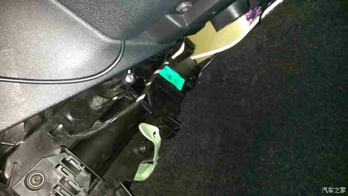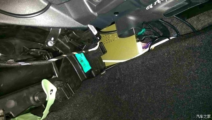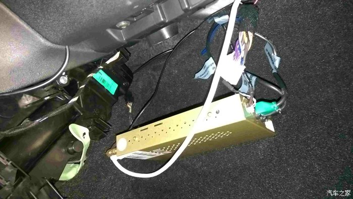 前面改装的朋友有提到,他们的导航模块有的是装在空调控制面板的后面,只要拧开螺丝就能找到,我尝试了去打开面板可是找不到模块....原帖上的作者提到他的模块是隐藏在副驾驶的脚蹬位置,按照教程上的方法我打开了那块板子,依然没有发现我的模块...难道是装在手套箱里面....这拆起来的工程很大....我宁愿放弃!正当我心灰意冷的时候,手电光照到一块金色的东西(手电筒是必备工具!建议没有也在手机上装个APP,我就这么干的~),仔细一瞧,不就是导航模块嘛!你大爷!4S为了完成任务手段太恶劣,塞进这么个鬼缝里,不好找,也不好拿出!模块体积太大也害得我把副驾驶左侧的档位盖给拆出来了!背面还粘了魔术贴....这施工的师傅您是处女座+没安全感吗?!!!脚垫掀开再掀开下面的原厂毛垫,各种走线是一塌糊涂....我无法用语言表达,放图自己YY吧