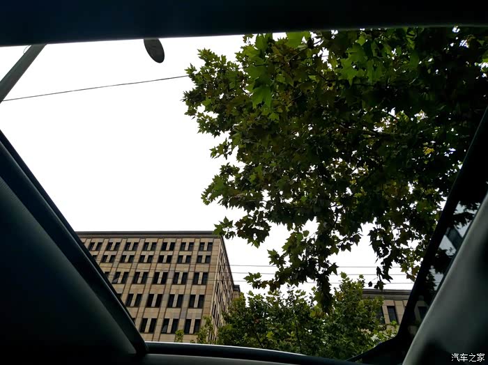打开天窗后,车内光线瞬间提亮了,还可以直接看到外面的天空,完全无阻碍。