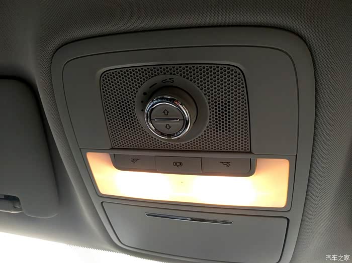 打开天窗的旋钮,天气比较阴,开了会顶灯。