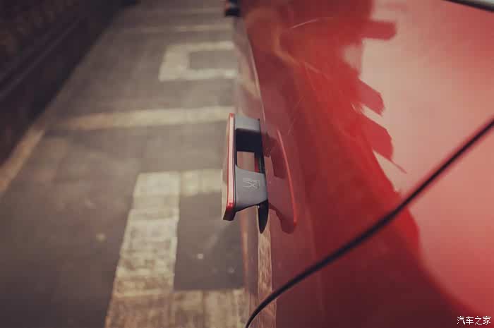 隐藏式门把手,还记得第一次去试车的时候闹了笑话,因为是第一次接触这类型的开门方式,当时站在车门边不知道怎么打开,结果工作人员拿着手机,在主驾位旁的外后视镜NFC感应器一贴,门把手就弹出来了。当时就有惊艳到我,这种高级的开门方式,真心喜欢。