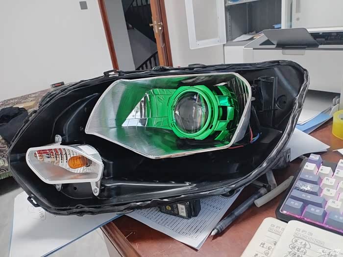 大灯原车蜡烛灯,黑龙江冬天黑的太早。必须改装。国产双光透镜配合led灯,灯光成本全算350左右元,包含透镜,灯泡,恶魔灯条,蛇胶。35买的二手热风枪。