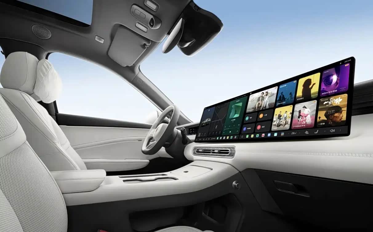 这张全景图直击核心!环抱式座舱以“林雪白”双拼配色打底,软质材料裹满中控台,阶梯式布局层次分明,向驾驶位微微倾斜的设计更显贴心。最吸睛的当属12.3英寸仪表+16.2英寸中控+副驾娱乐屏组成的三屏联动系统,屏幕衔接流畅,开机时的动态效果科技感拉满,完全颠覆同价位塑料感印象 。