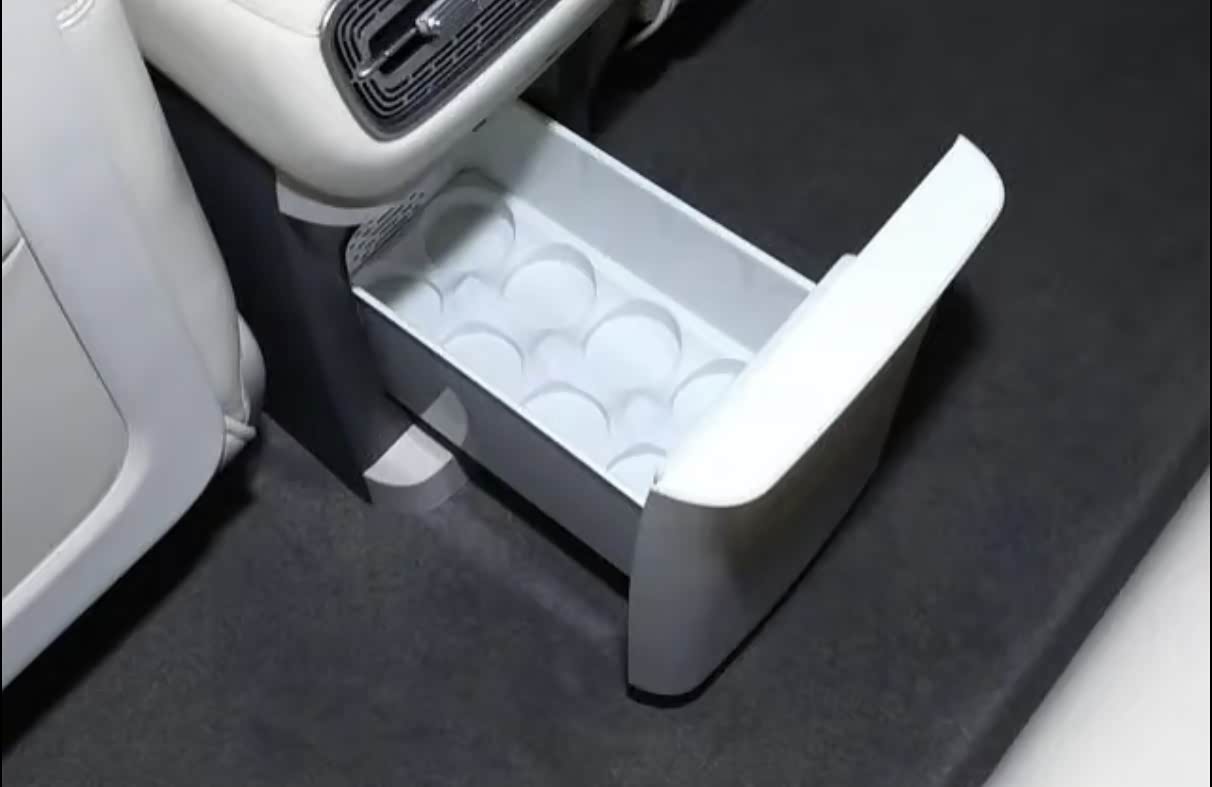 怀挡设计堪称“空间魔术”!取消传统挡把后,中央区域变得格外通透:带防滑垫的无线充电板随手能放手机,下方掏空储物格能塞下随身包,双杯架还带限位功能。最惊喜的是中央扶手箱里的冷暖冰箱,支持-6℃至50℃调节,能装6瓶500ml饮品,夏天冰饮料、冬天暖咖啡太实用了。