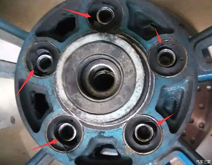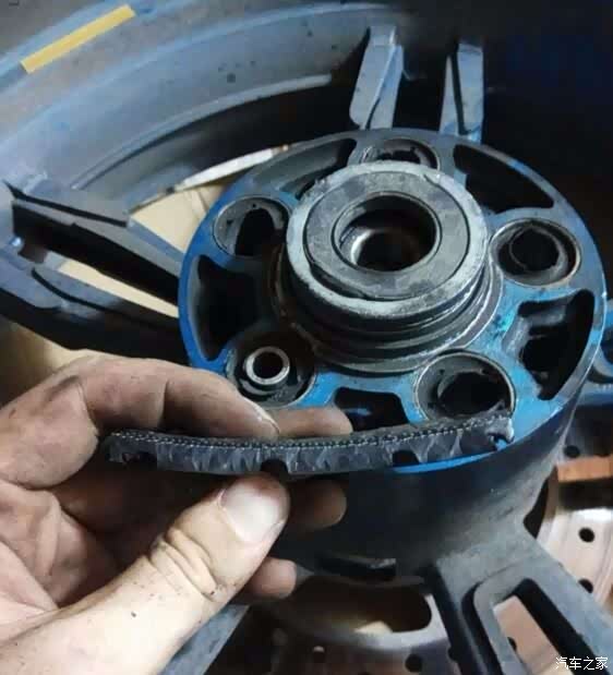拆开后,果真牙盘与轮毂固定垫片磨损了,当然,轮毂套槽也有点磨损,居然有2mm间隙!这是相当夸张了。