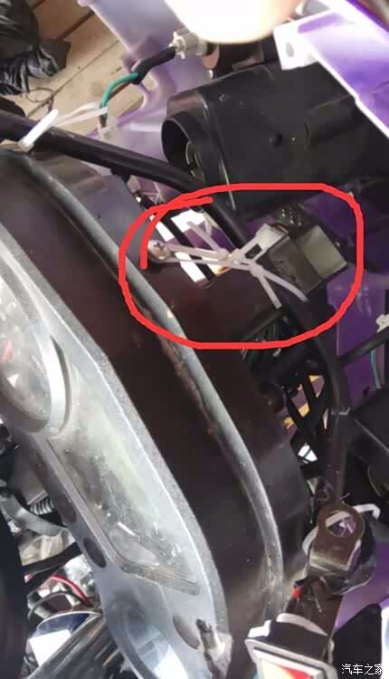 找个螺丝拧进仪表塑料壳,然后用捆扎带固定在车头铁架上。