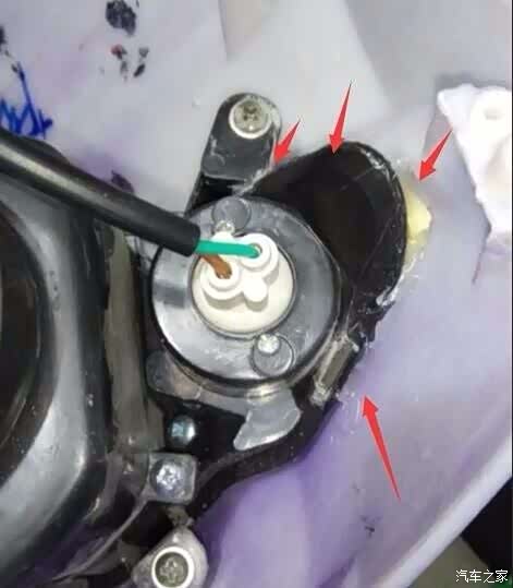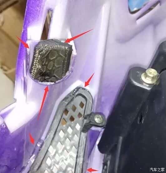 断裂的大灯固定点(真是坑爹,4个固定点断了3个,不过还好修回去了)