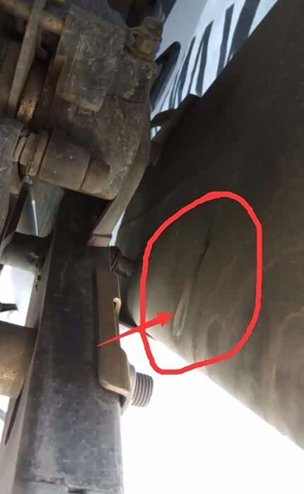 后轮轴和排气管摩擦后排气管已经磨出凹痕