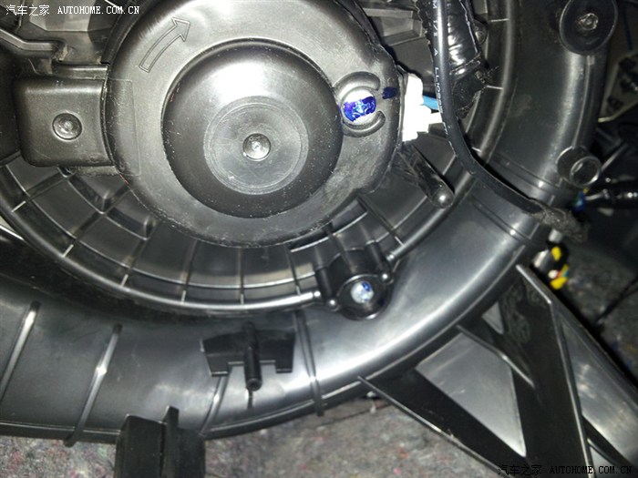 看看这就是鼓风机,要拆他也很容易,只要拆开红圈的螺丝就下来了,还有一颗没拍到。等下次再挂了,去TB买个自己换上,TB好像200多一个,4S太黑了要贵4倍