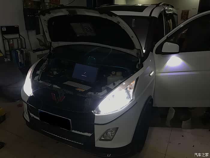 到晚上了,齐活儿准备启动车看状态,拍照开闪光了。