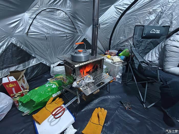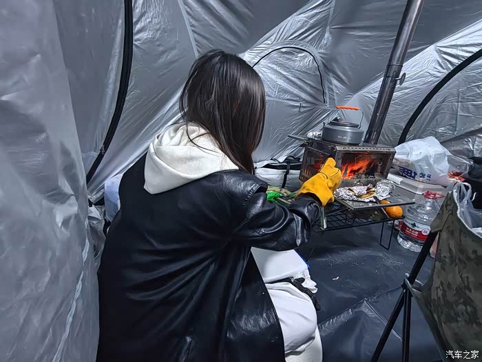 看完星空,我们点燃了柴火炉,温暖的火光映照着我们的脸庞。在这宁静的夜晚,伴随着柴火的噼啪声,大家都渐渐进入了梦乡。