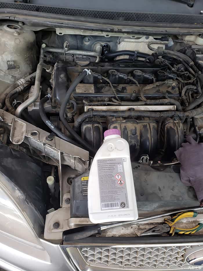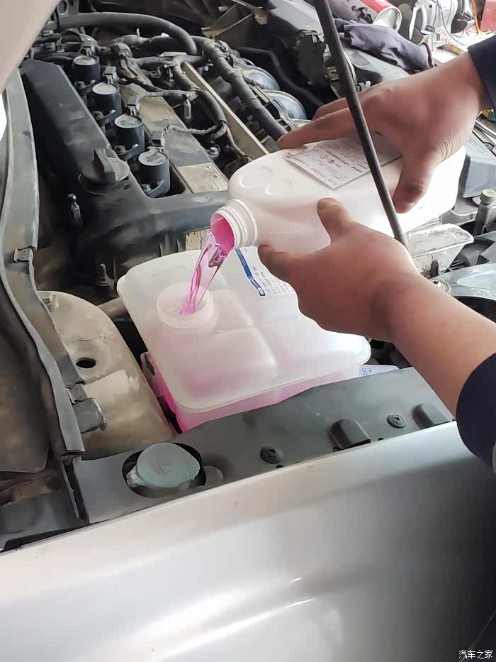 直接带了家里库存的奥迪G12evo冷却液,8瓶,实际用了6瓶整