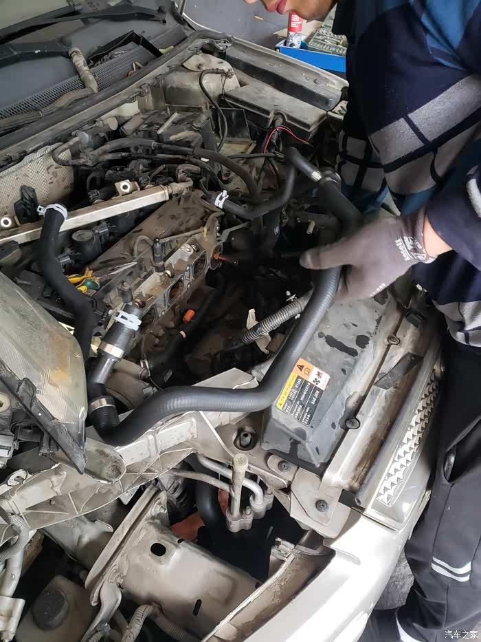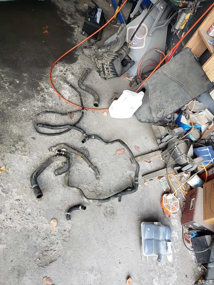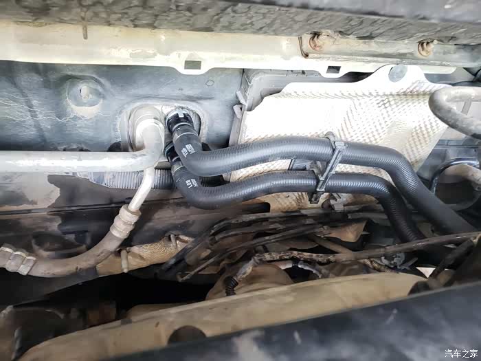 旧管子拆掉后,用气枪逼出缸体残留液体,暖风水箱管路也是如此