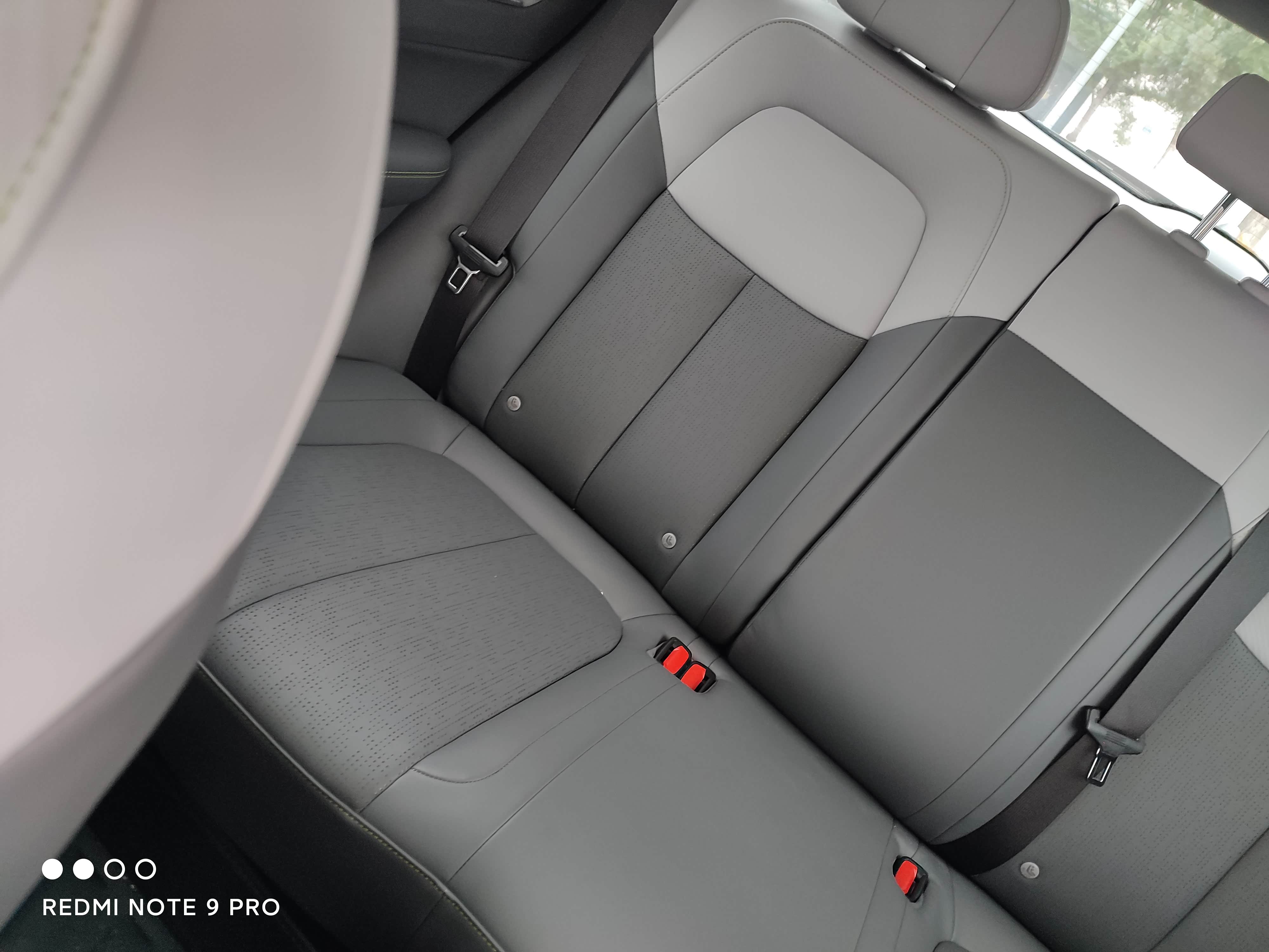 后排座椅,或者说整车座椅做一个上下拼色的还是挺特别的,跟我的连衣裙好像有点像的。