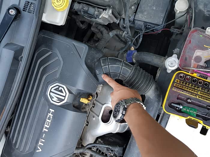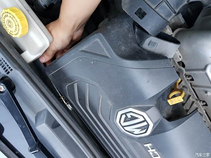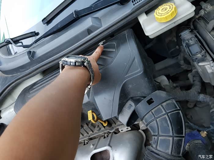 两个管拆下来以后,拿下空滤盒,需要先把机油盖拿下来,才可以拿下来。