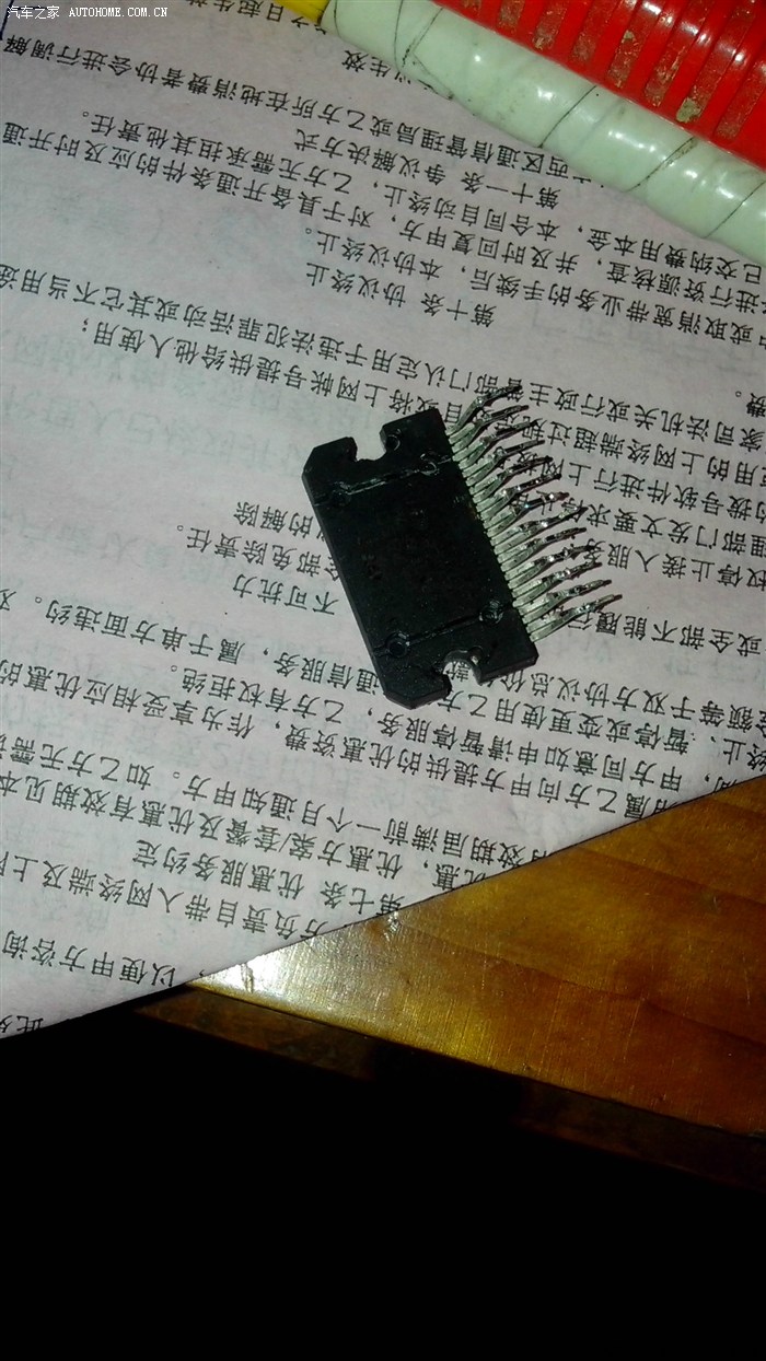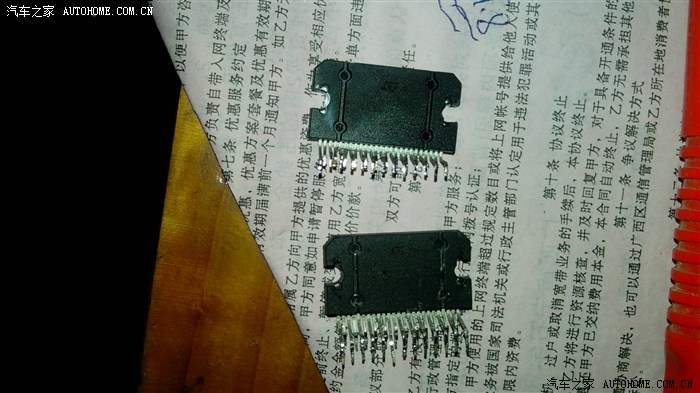 首先从XX店买IC。4S换的导航听说是原厂的,也不管他是不是原厂或者副厂的,先拆,看一下IC型号,这样也好找到合适的代换对像,看了一下原机的型号为TDA7388,上网查了资料,完全可以用TDA7850替代。于是上网找TDA7850,本人以前从事过家电修理,所以比较相信进口芯片,在网上找了半天,终于找到一家进口的IC,上面标有MLT,但是拆机件,不管了先淘了再说!