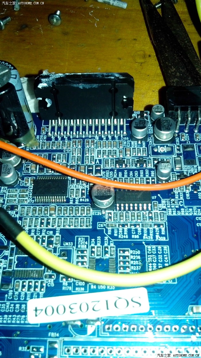 下面是我的改装作业,今天又帮朋友改了一台车,更换TDA7850,他的导航的DVD主机的功放IC型号是ZL7388,完全替代,也是一次成功!