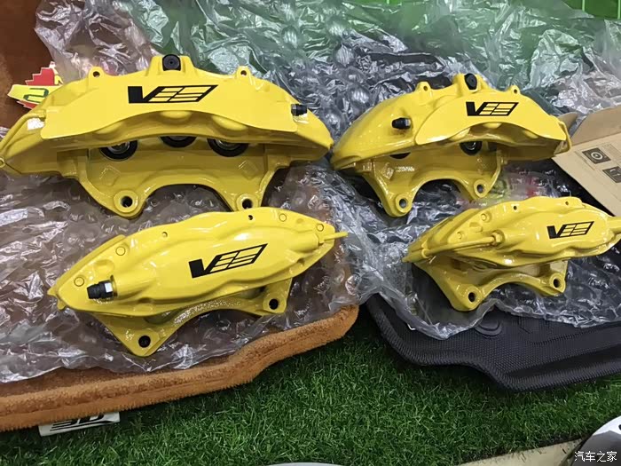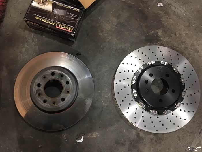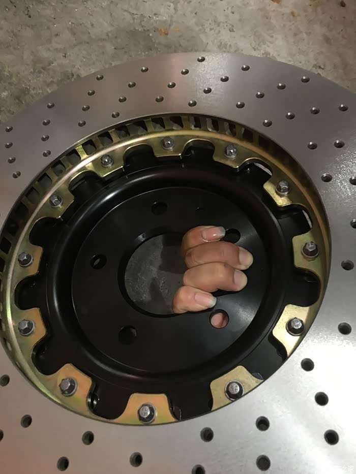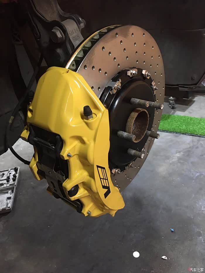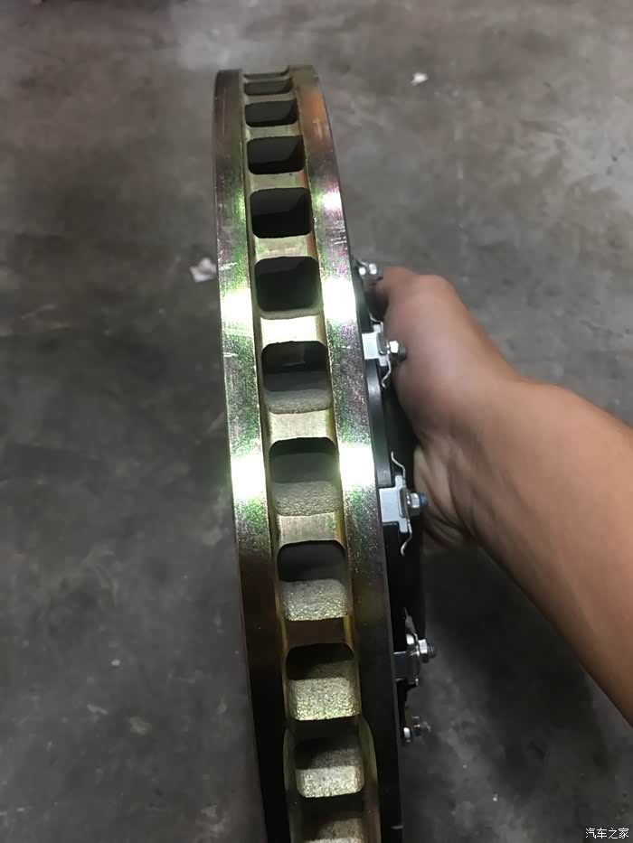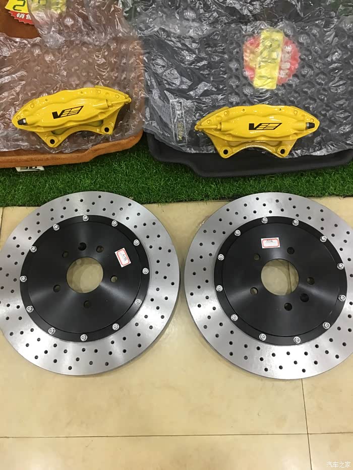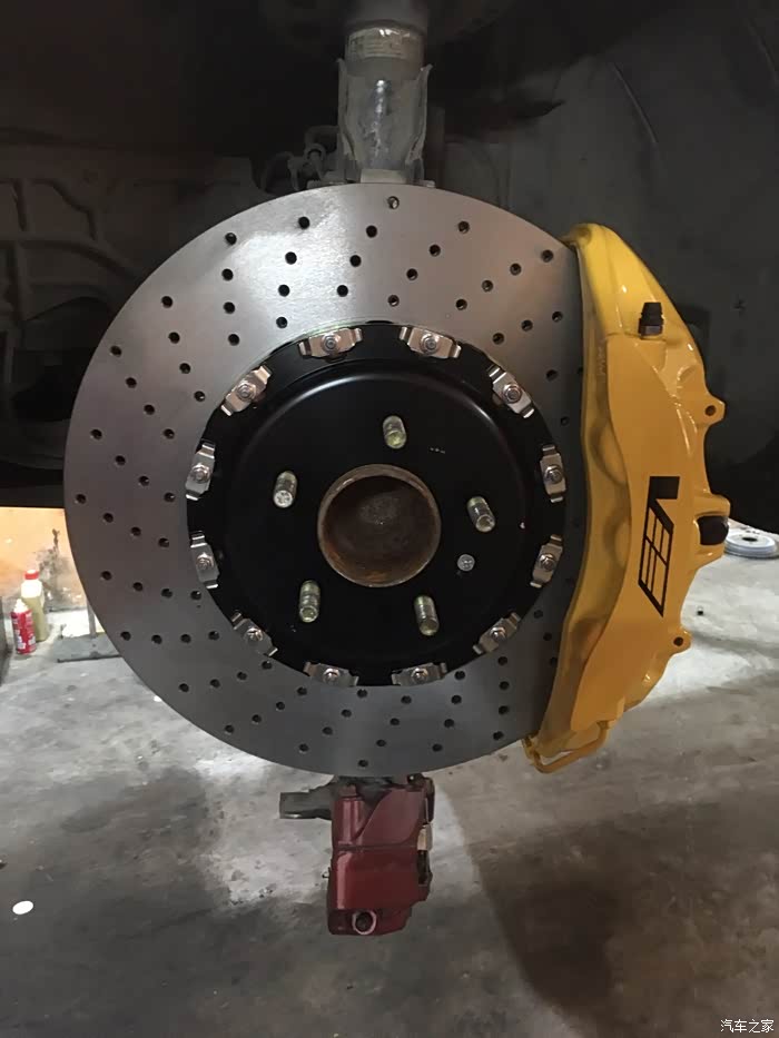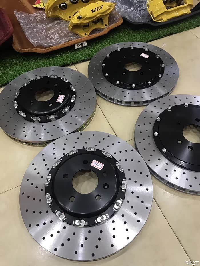 刹车盘是国外定制的 说是布雷博盘 看不懂 什么测试检测都上了 没什么问题 哈哈 上了