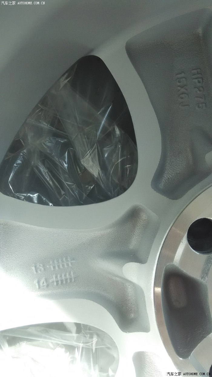 但是,4s的销售员信誓旦旦地说,他们所有的4s店用的都是这个牌子的轮毂,这个就是原厂装配的。而且,还让我看这个轮毂的做工和工艺,从外表看,这个轮毂确实还是可以,表面很光滑,重量还可以,感觉挺沉的,也没有气泡和裂纹之类的。从外表确实看不出什么,再加上被他一忽悠,于是就说,行了,装吧!于是就开始安装了!