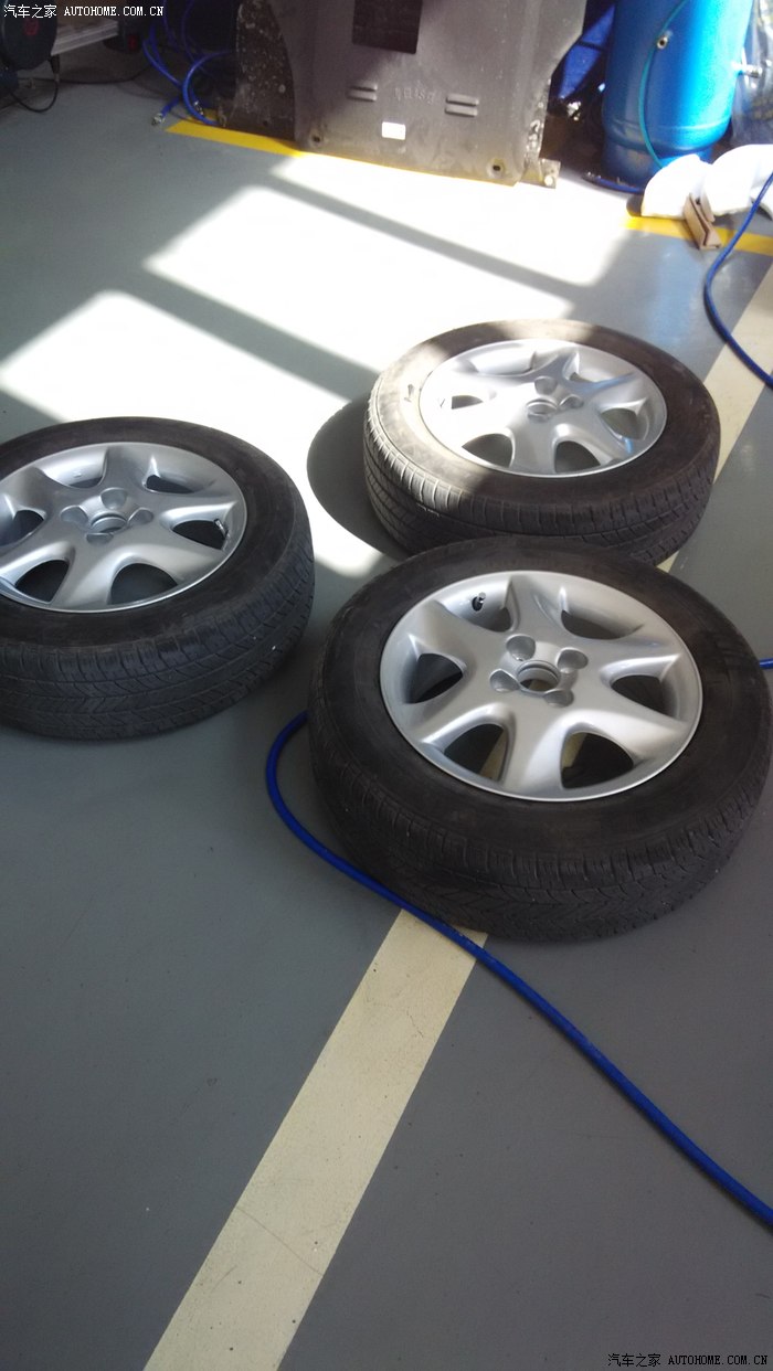 旧的钢轮毂拿下来,换上新铝轮毂。