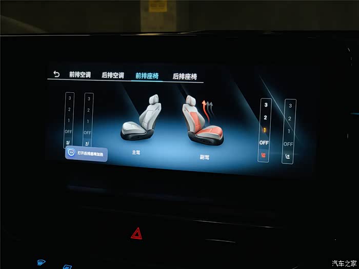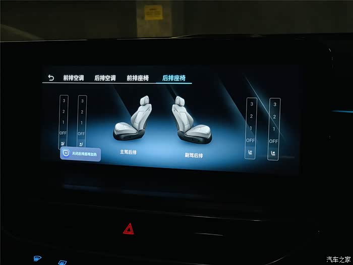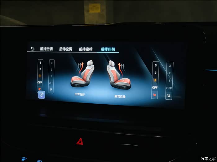 另外,前后排的座椅加热通风也完全可以通过语音进行控制,有时候我们俩带娃出门,孩子在二排睡着了,我们就可以直接通过中控屏控制二排的空调、座椅加热/通风,反正就是特别方便。
