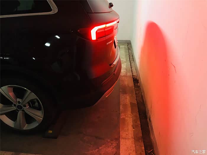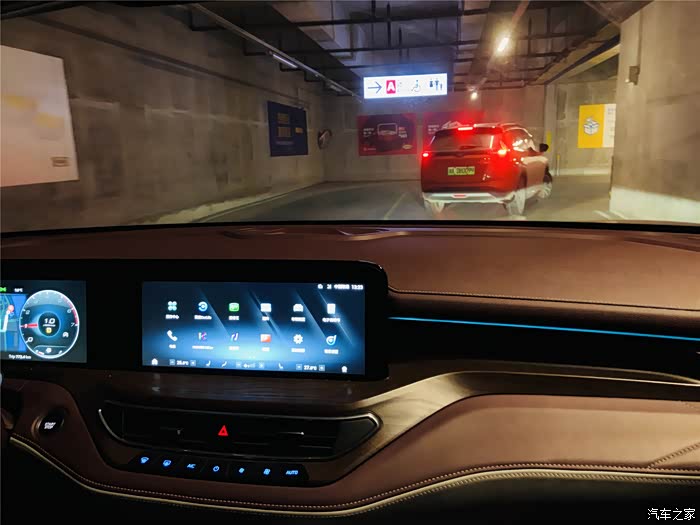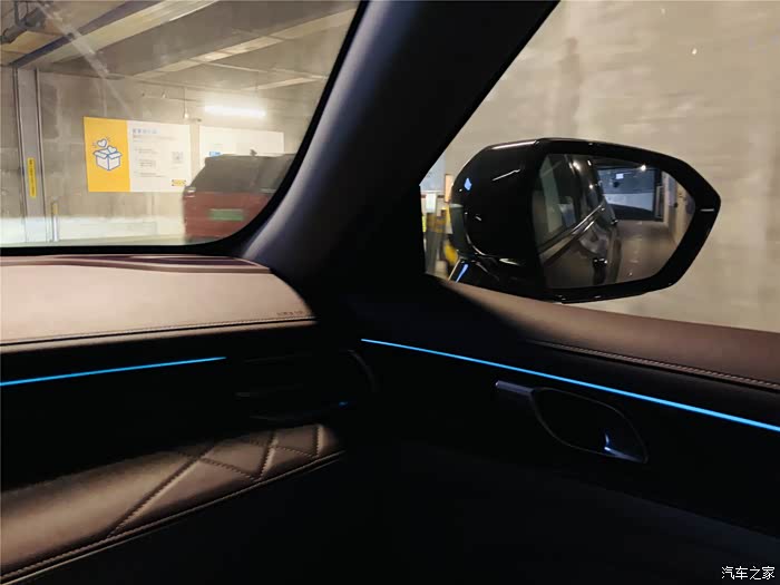 进入到宜家的地下停车场,进门的地方弯道比较窄,灯光全靠自己的车灯,这时候车里面的氛围灯也亮起来,还别说,氛围感挺足的。