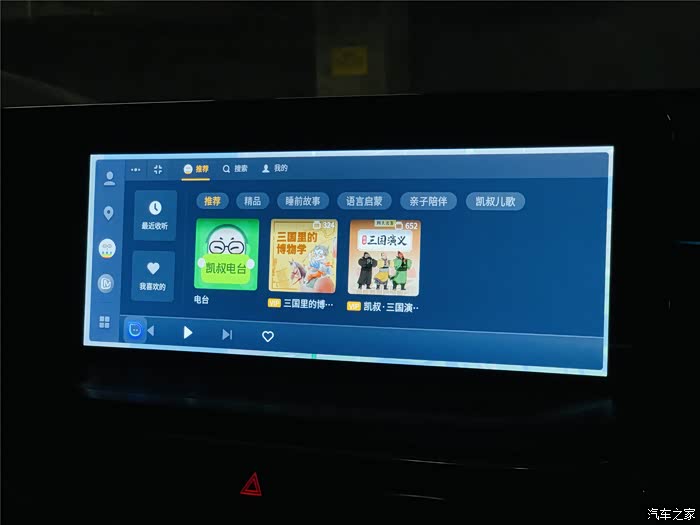 娱乐功能也不仅限于大人喜欢的听歌看电视,像小朋友感兴趣的凯叔讲故事、宝宝巴士儿歌等,也都是一应俱全,除此以外,加油、吃饭、看电影、天气、机酒的查询,也都可以通过这套车机系统进行查询,给我的感觉就是,有了这套车机系统,手机就可以歇业了,安安静静躺在无线充电板上补充能量得了。
