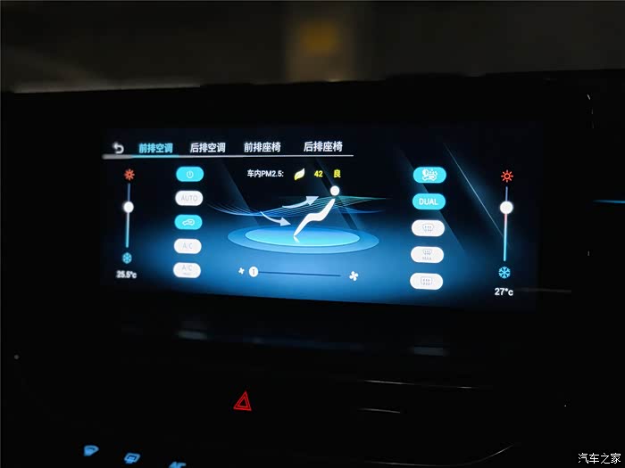 关于领裕的空调系统,它是带有主副驾驶+前后排分区控制的空调系统,而且自带车内空气质量实时监测和净化功能,可以很全面地兼顾车上每一个成员的体感。