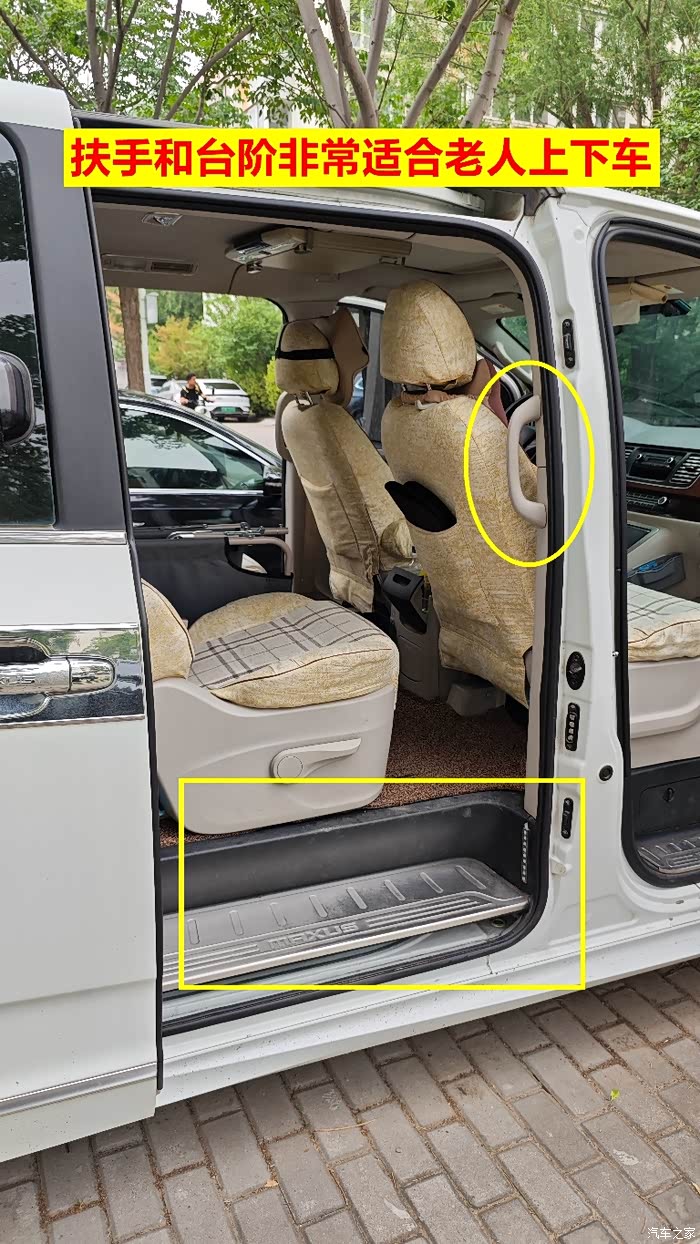 六是上车台阶和扶手非常实用。车子中门设计了一个台阶,在门柱上还有一个把手,这个设计对家里的老人非常友好。岁数大了,腿脚不灵便,借助这个台阶和扶手,老人上下车非常轻松,真的是谁用谁知道!