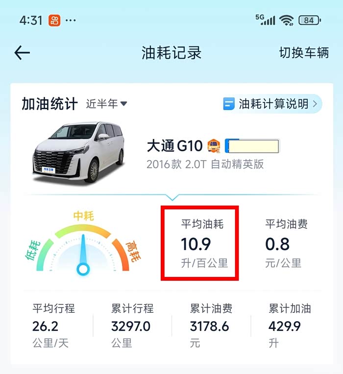 四是油耗方面,目前基本在11个油左右,还能接受。前几年接送孩子,短途用车多,油耗基本都在12-13之间。现在不用接送孩子,短途用车减少,油耗明显下降,今年以来,油耗几乎都在11升以下,属于可以承受的范围,毕竟这么一个大七座的车子,车子自重就摆在那里了。