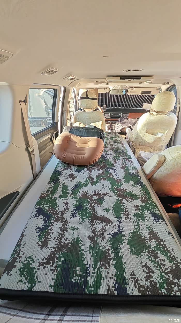 借着车子大空间的优势,我还把中排座椅给放倒了,搞了两个简易露营床,长度将近1.9米,偶尔还出去露营放松一下,非常舒服。