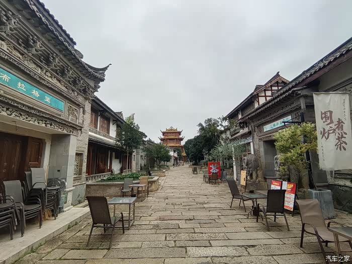 12街巷以《红楼梦》金陵12钗命名,配12生肖石雕。商户大量撤离,仅余少量拍照游客及居民散步。31.8米高全铜装裱龙潭阁,移植江南青石板、古树。