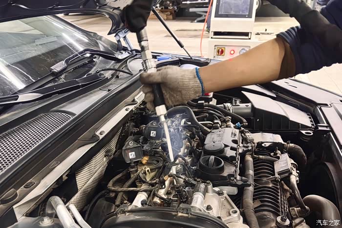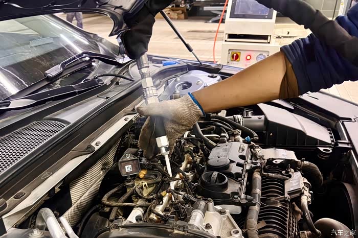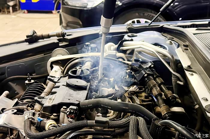 操作的时候没看清楚,应该是从火花塞的位置插入干冰机金属管进行清除积碳的