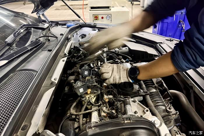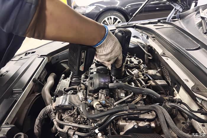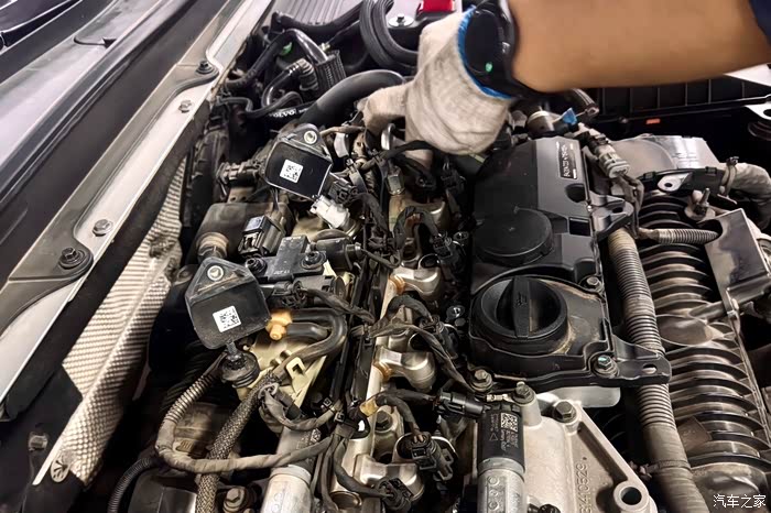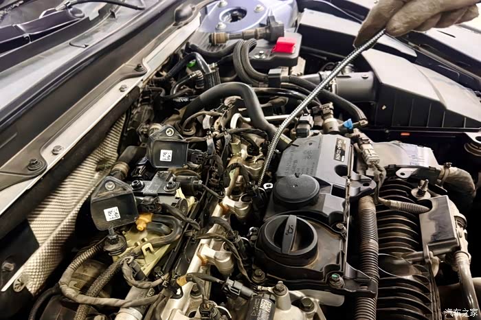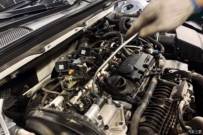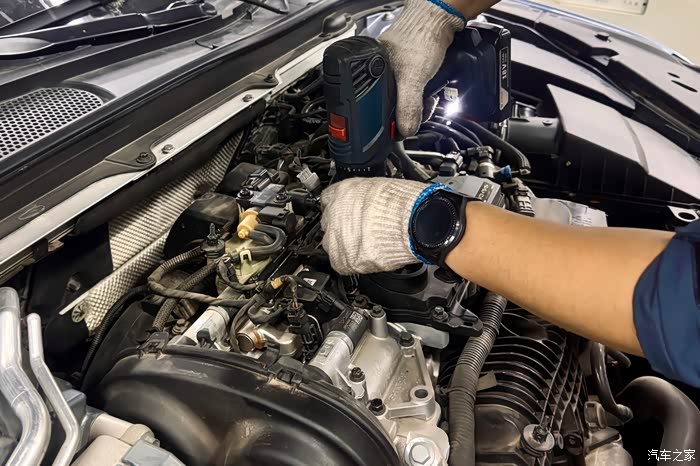 四个汽缸展现在眼前,点火线圈连接在火花塞上