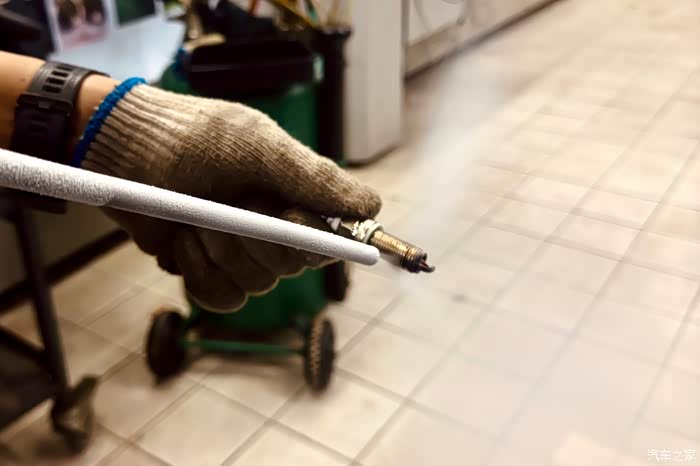当汽缸清洗完成后,提醒我直观感受火花塞的变化