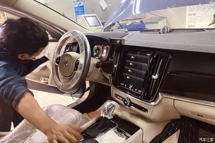 车内套上保护膜,准备开始新一轮的服务项目~干冰清积碳,杂乱无章中略带一丝宜家的奢华