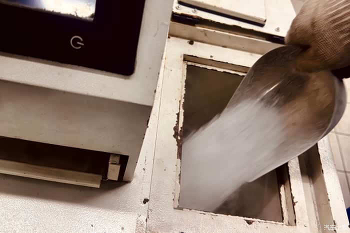在机器不停的运转中,清晰可见的冷白气体不时喷涌而出,金属管上凝结了一层细密冰寒的白色冰珠,期间多次需要往清洗机进料口里添加干冰,当四个汽缸清洗完成以后,维修师傅特地提醒我直观感受火花塞干冰清洗的效果,不像缸内那样看不见,火花塞清洁后整个清洗流程完成;