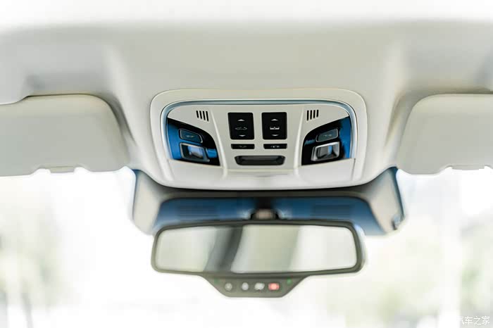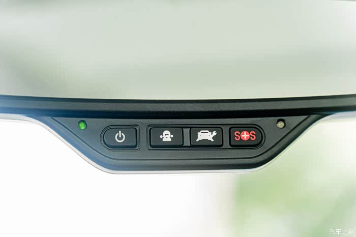 车内后视镜的下方也有几个小按键,包括紧急救援按键,贴心保障行车安全。