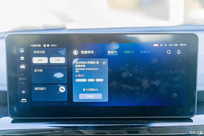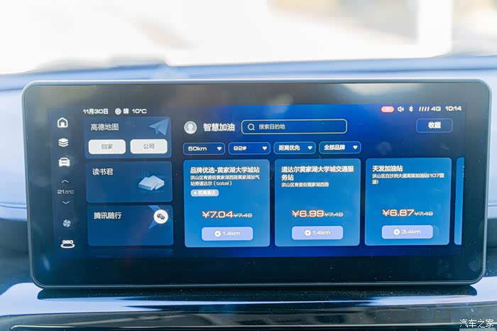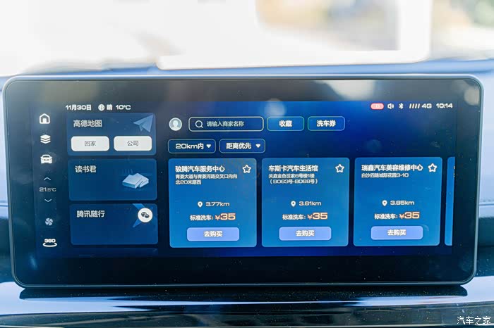 除此之外,车机系统里还有很多方便用车的功能,停车、洗车、加油都可以一键找到距离最近的目的地,不需要自己在导航里单独去搜索。