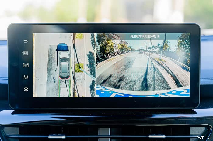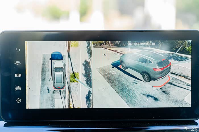 首先是车上搭载的360度全景影像功能,可以清晰的看见车身周围的情况,让停车错车再也不困难。