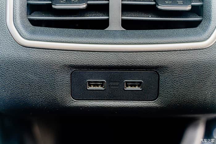 车上的细节设计也体现出满满的人性化,后排的空调出风口下方也安排了两个USB接口,带家人朋友一起出门都不用担心会手机没电。