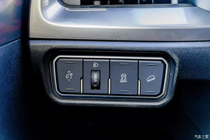 方向盘左侧的这排按键,最左边的这个是可以调节仪表盘显示亮度的,可以保证在各种强度光线下都能看清仪表盘。