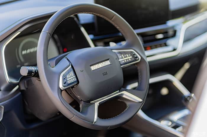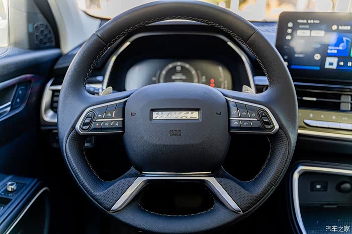 第二个细节就是关于国潮H6的多功能方向盘,按键功能很丰富,不过握起来感觉稍微有点细,可能套个方向盘套会好一些。