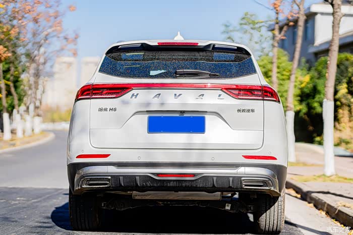 后面看贯穿式尾灯也是非常漂亮的,哈弗的车标刚好嵌在中间。