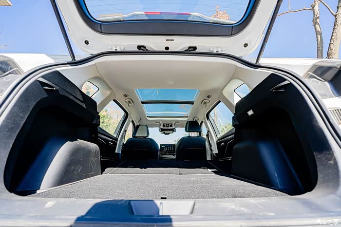 后排的座位坐三个人是绰绰有余非常宽敞的,而且后排座椅可以放倒,放倒之后就和整个后备箱连在一起,偶尔遇上个需要搬家或者拖点大件的情况也完全不用担心。