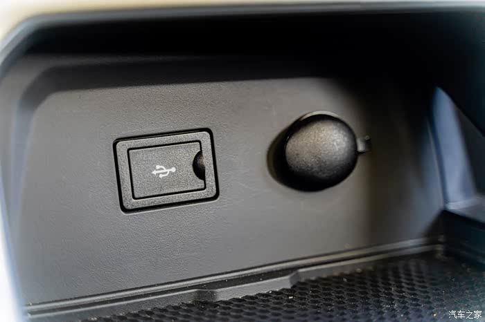 第六个细节是车内中控下方的这个小空间,点烟器的位置设置了一个圆形的小盖子,更加安全,可以避免小朋友调皮淘气乱摸误伤,旁边是一个USB插口,可以很方便给手机充电。