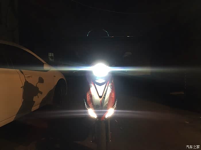 写在最后:这款LED大灯是目前对原车反光碗匹配最好的一款,照片的效果会显得中间过亮,实际铺路效果特别好,远光聚光也不发散,怠速的时候可以稍微听到散热风扇的声音,很有“科技感”,远近光同时亮的时候风扇会提高转速,感觉比近光还好听。此款大灯型号是H4,原车是这种灯泡可以无损安装,也能有损安装,具体安装法优酷找无痕的节目。