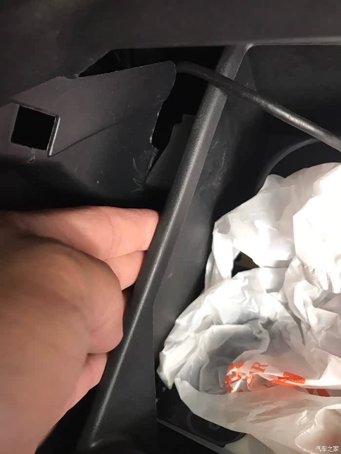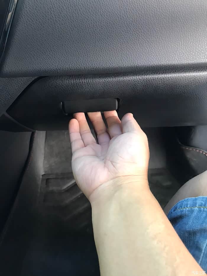 手套箱右边用手捏住