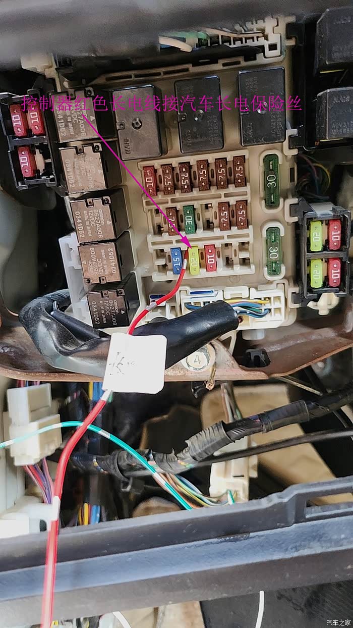 控制器红色线接汽车的长电保险丝。