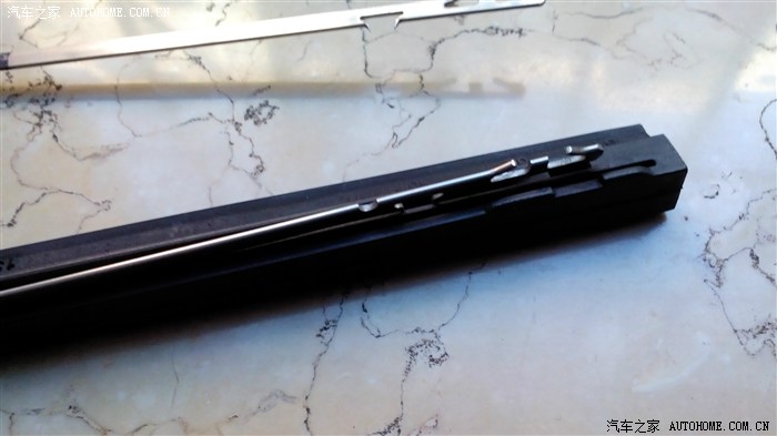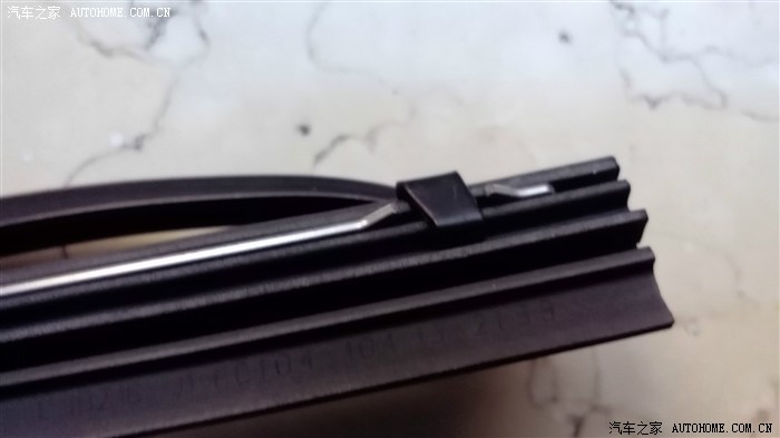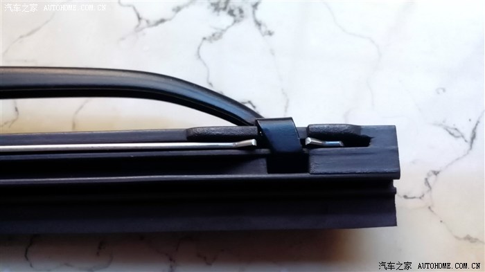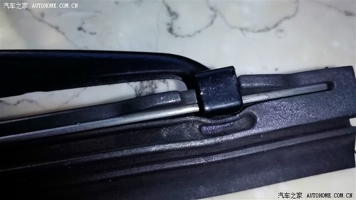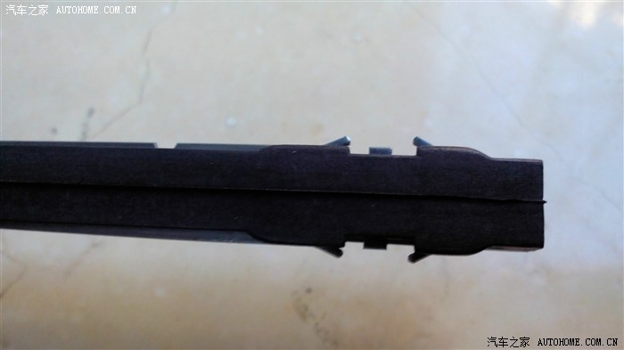 与原厂的相比,多了一个卡扣容纳位置,有点类似朋友的中华V5原厂雨刷器胶条。这种胶条本是为了钢条上没有固定装置的雨刷器片而设计的,这种胶条下次再拆时就要注意,需要先把卡扣从容纳位置中摘出来,像这样,然后再一步步操作拆解。这个就是中华V5的原厂胶条,由于钢条上没有固定装置,所以摘成这样后用点力就可以顺出来了