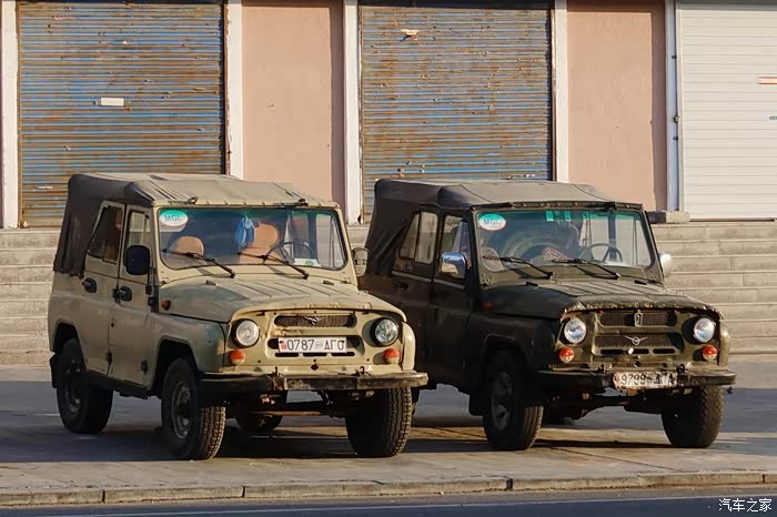 在二连随处可见挂着蒙古国牌照的苏联嘎斯69越野车。嘎斯69是由五十年代的苏联高尔基汽车厂生产,该车最早的用途是军用战术四驱车。除了军事用途外,嘎斯69还被大量出口到当时的社会主义国家,包括我国。直到60年代,中苏关系破裂,苏方停止供货,随后我国有了国产的212吉普,虽然嘎斯69早已停产,但由于该车越野性能好,运输能力强,结实耐用,深受蒙古国司机喜欢。据说扎门乌德几乎每个家庭都至少会有一辆嘎斯69,用来往返二连采购日常生活用品。